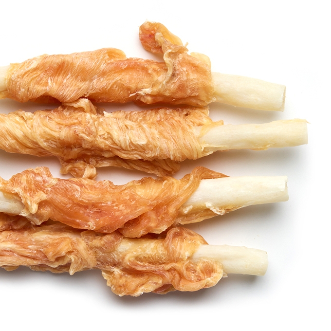・牛皮を使用したガムに鶏ササミを巻きつけたハードタイプ