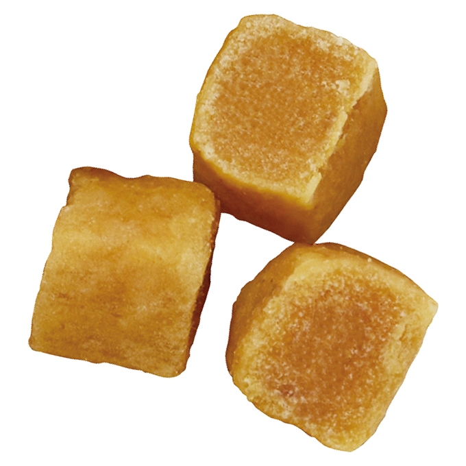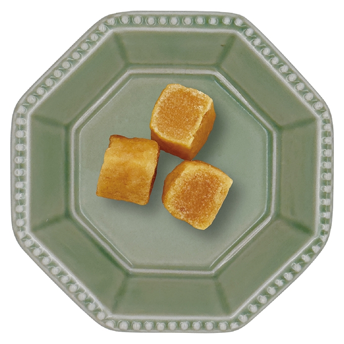 チキン生地にさつまいもが入ったキューブタイプのおやつ。