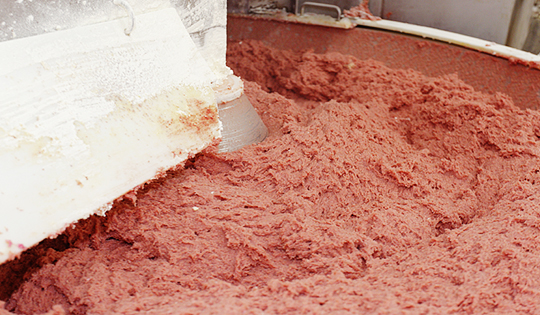 食べやすいカタチに成型し、高温で加熱し殺菌します。 -